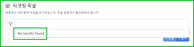 No results found  는  검색결과 값이 없다는 뜻입니다.. 이제 이 기능을 사용하기위해 픽셀을 추가합니다..